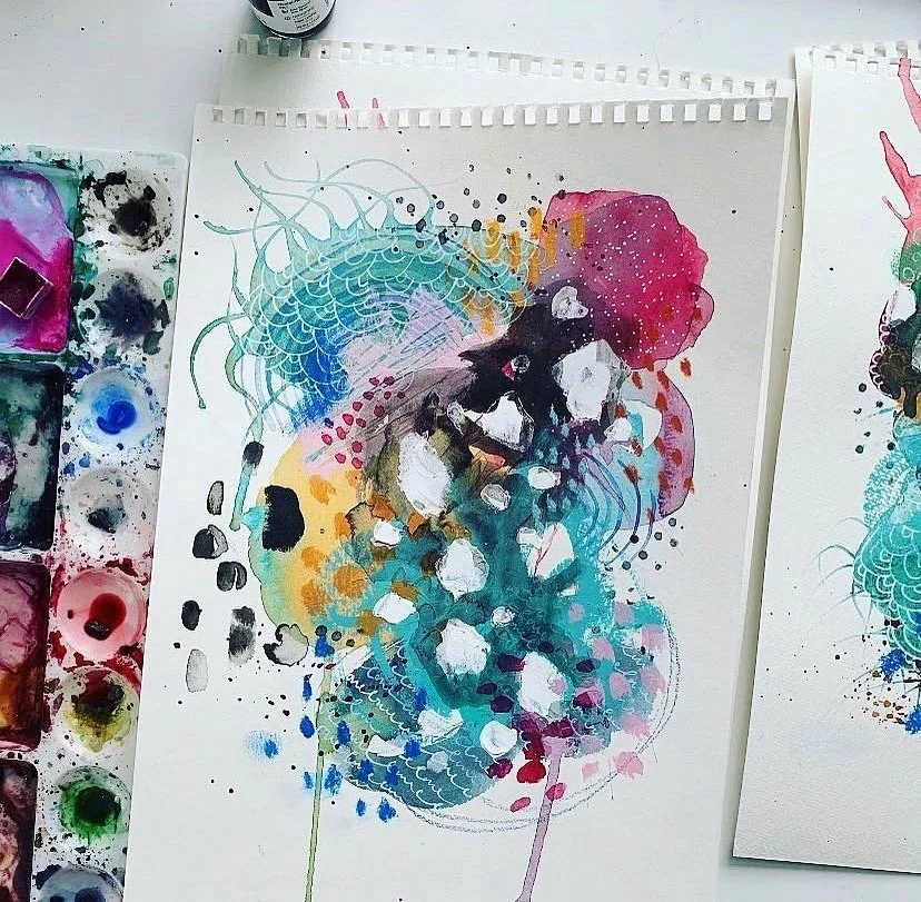 The Painted Oracle is a playful, intuitive watercolour workshop that blends creativity with inner reflection. We begin by exploring colour, mark-making, and different tools and techniques. As you create, I gently weave in intuitive practices that help you tune in and listen to what’s unfolding on the page.